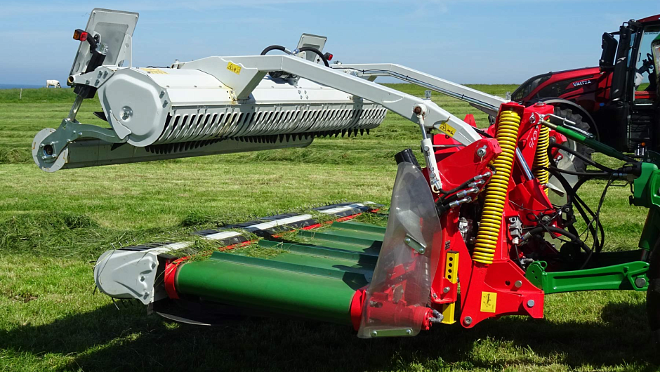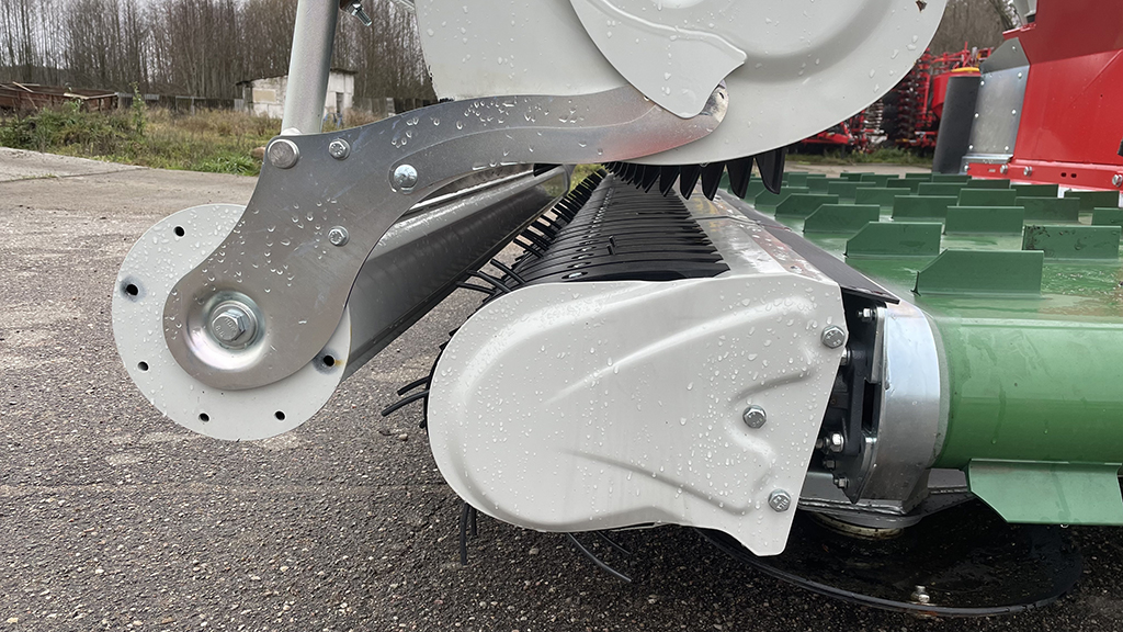 - Валкообразующий каток направляет поток урожая к подборщику