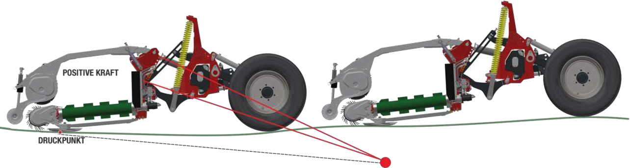 - 4 звенная кинематика «Profi» - быстрая реакция - равномерная высота сгребания. Спокойный ход в работе. Мгновенная опора под землей - рабочий орган может легко отклониться вверх.