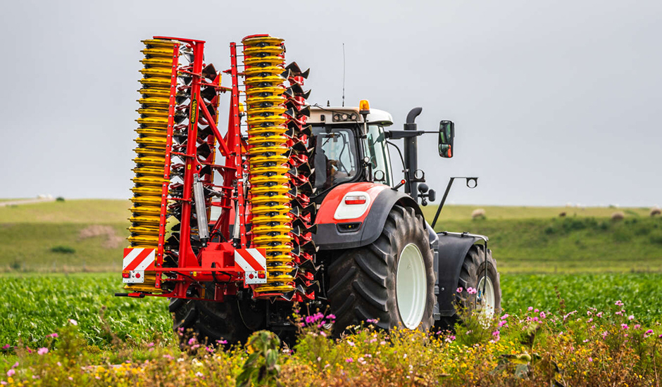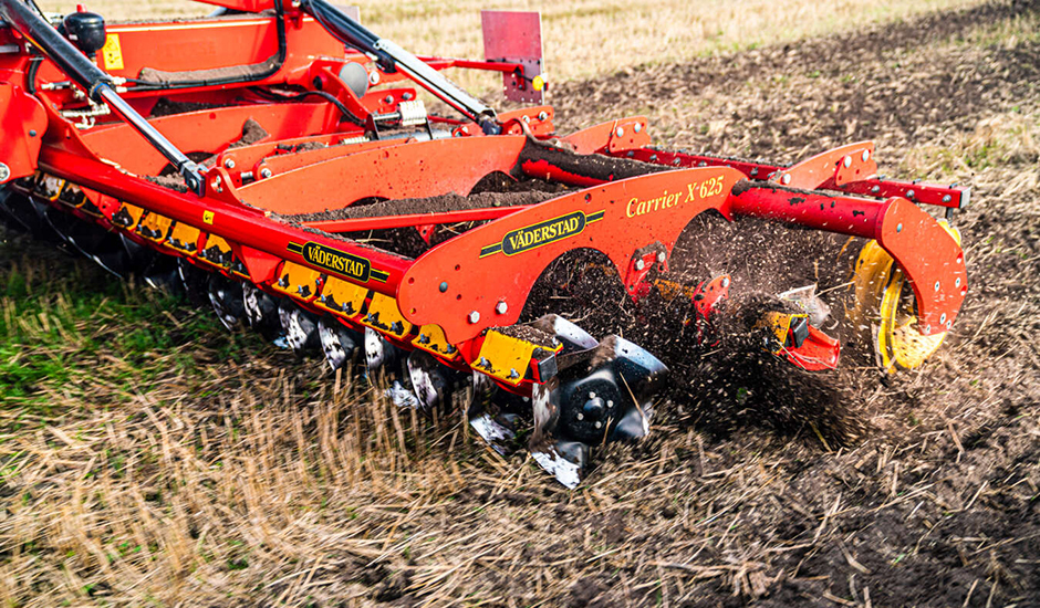 Складной навесной дисковый культиватор Carrier X предназначен для высокоскоростной культивации и эффективного перемешивания стерни на глубину до 12 см. Carrier X оснащается стандартными коническими дисками 450 мм или 470 мм TrueCut с Х-образной расстановкой, что обеспечивает сохранение заданной глубины и отсутствие смещения по ходу движения трактора. Диски CrossCutter 450 мм имеют V-образную расстановку и используются для поверхностной культивации и выравнивании. Глубина обработки регулируется гидравлически прямо из кабины трактора.