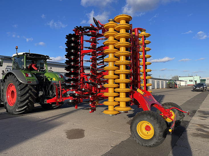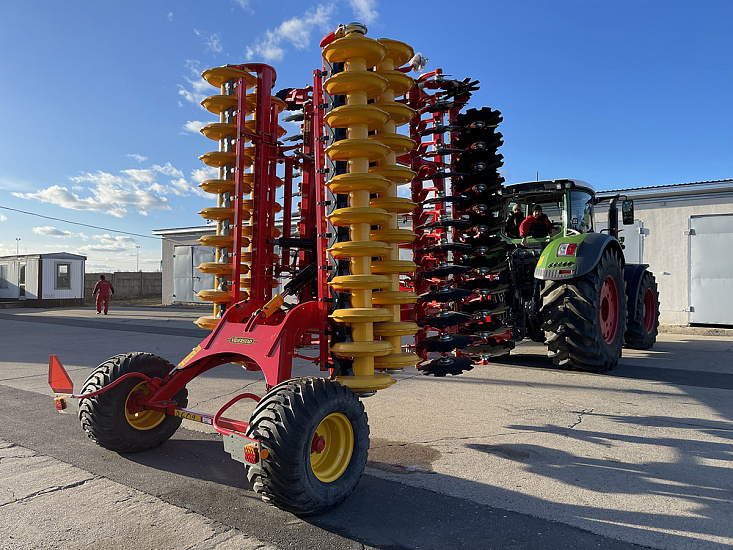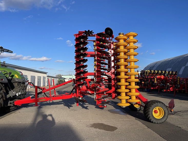 Конические диски, расположенные по центру машины в два ряда, агрессивно разрезают почву. Благодаря большому диаметру дисков (TrueCut V-диск 610мм) машина эффективно дискует большие объемы пожнивных остатков на глубине до 18 см при увеличенной рабочей скорости до 15-20 км/ч.