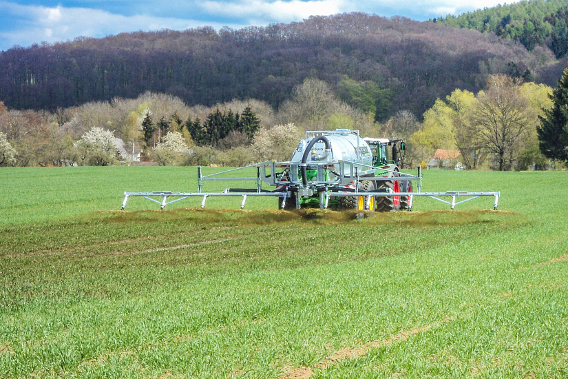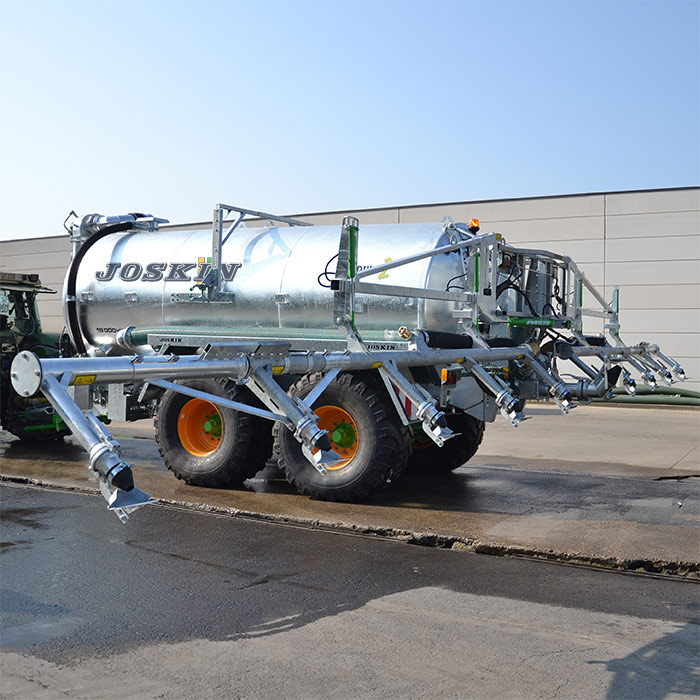 Штанги с форсунками Multitwist JOSKIN позволяют равномерно разбрызгать жижу с шириной захвата 12 и 15 м. Это орудие состоит из двух главных насадок (Ø 125 мм), установленных на треугольную структуру. Каждая из них располагает разбрызгивающими форсунками, расположенными с интервалом 1,5 м. Каждая оснащена отражательной пластиной, которая направляет жижу к земле в форме зонтиков. Благодаря этому, струя меньше чувствительна к ветру и потери аммиака существенно снижаются.