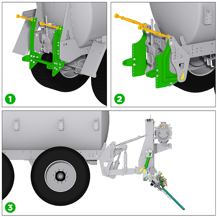 Для установки штанг Penditwist START на цистерны доступны 3 типа преоборудования. Первый тип, разработанный для Modulo2, устанавливается на задние крепления: он состоит из опор для штанги на болтах и двух тяг, закрепленных с каждой стороны опор для большей устойчивости. Это оборудование расположено как можно ближе к цистерне, чтобы максимально уменьшить вынос за её габариты, а также может регулироваться по высоте в соответствии с размерами колес для обеспечения оптимального угла работы штанги в 45° с колесами любых размеров. Второй тип преоборудования предназначен для цистерн, не оснащенных ни задним люком доступа, ни гидравлическим подъёмником, но имеющих преоборудование для последнего. И, наконец, третье решение предназначено для цистерн, оснащенных гидравлическим подъемником.