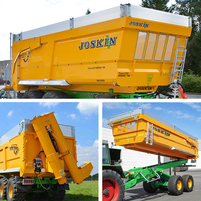 Линейка прицепов-самосвалов Trans-CAP относится к бестселлерам среди транспортных прицепов, выпускаемых JOSKIN. Доступные с одной (грузоподъёмность от 10 до 12 т) или двумя осями (грузоподъёмность от 12 до 18 т), они предлагаются в вариантах с объемом от 10,20 до 21,90 м³ DIN. Алюминиевые надставные борта высотой 25, 50, 75 или 100 см, доступные в опции, позволяют существенно увеличить общий объем, превращая машину в транспортный прицеп XL. Монолитные прицепы-самосвалы Trans-CAP доступны с бортами высотой 100 см (модели 4500 и 5000), 125 см (модели от 5000 до 6500) или 150 см (модели от 5000 до 6500) для работы во всех возможных ситуациях.