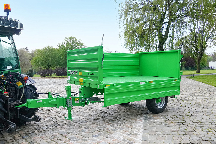 Бортовые прицепы Trans-EX, доступные с одной и двумя осями и грузоподъемностью от 3 до 9 т, отличаются компактностью и легко модифицируются. Все борта кузова легко снимаются для превращения прицепа в платформу: идеально для перевозки тюков и рулонов, ящиков или поддонов. Для пользователей, желающих увеличить объем, в опции предлагаются надставные борта высотой 20, 40 или 80 см. В стандартном выполнении кузов опрокидывается назад, при этом 3-стороннее опрокидывание (влево, назад и вправо) доступно в опции. Короче, Trans-EX - идеальный прицеп для небольшой или средней фермы, конного клуба, садово-паркового хозяйства и т.д.