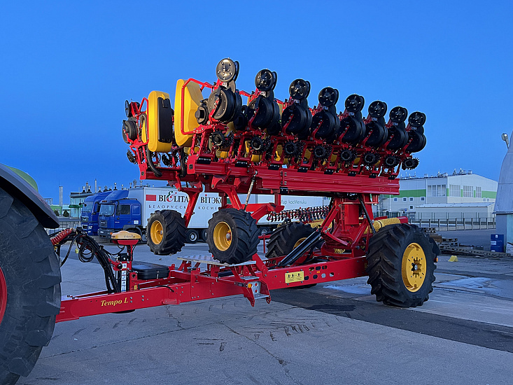 Tempo L также оснащена гидравлическим давлением крыльев, которое за счет распределения веса по всей ширине обеспечивает равномерный ход с поддерживаемой глубиной сева, даже в случае любых неровностей на поле. Двойные опорные колеса адаптированы для сева с узким междурядьем.