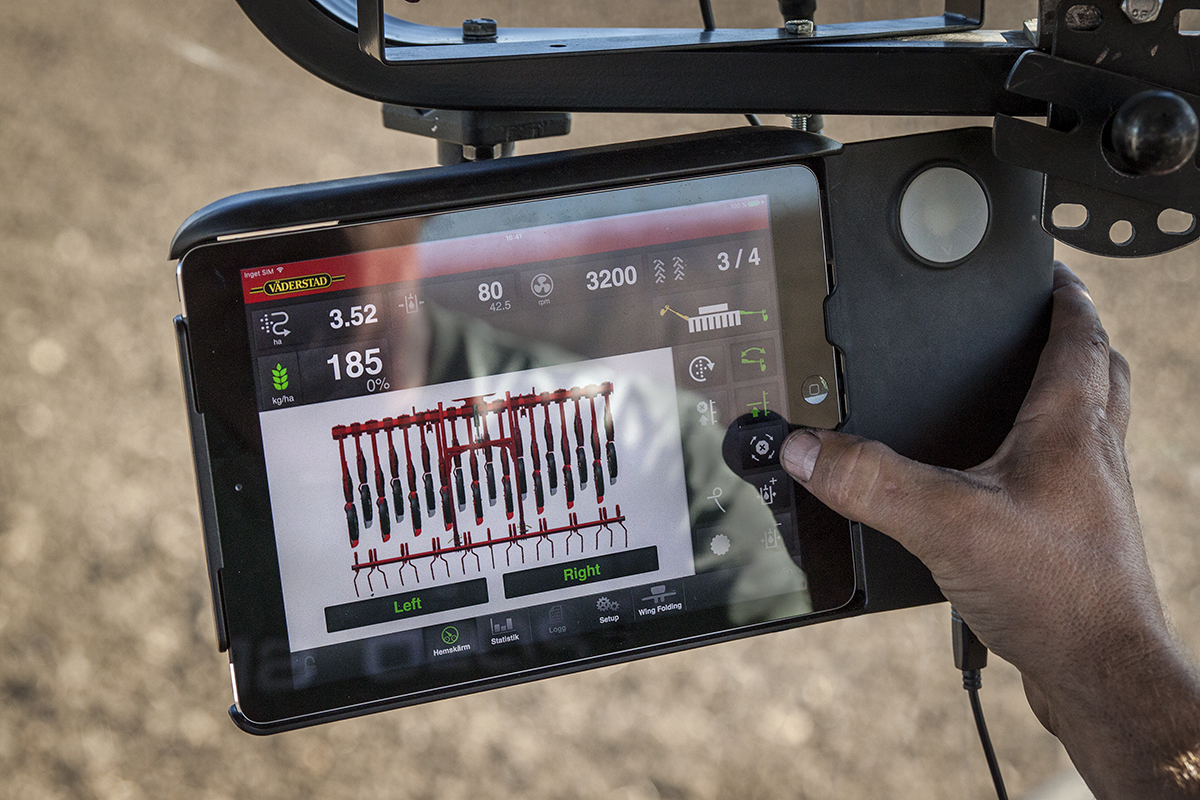 Беспроводной доступ ко всем функциям и параметрам сеялки онлайн обеспечивает система контроля Vaderstad E-Control на базе планшета iPad. Оператор, находясь в радиусе 100м от машины, может управлять рабочими органами машины, менять настройки и откалибровать сеялку, сэкономив немало времени.
