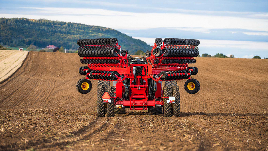 Сеялка Tempo L16 Central Fill оснащена центральным бункером объемом 7 200 литров, который вмещает 2 отсека: 2 200 литров для семян и 5 000 литров для удобрений.