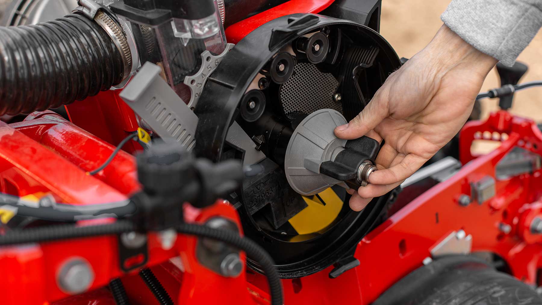 Система точного дозирования гарантирует высокий результат даже при высоких скоростях: до 350 кг/га при скорости 15 км/час. Высевающий аппарат сеялки Tempo L работает под избыточным давлением воздуха для точного ≪выстрела≫ семени на скорости 50 км/ч через трубку сошника. При растущей скорости сева качество и норма высева сохраняются, обеспечивая линейную строчку и исключая двойники и пропуски – технология PowerShoot гарантирует точный контроль.