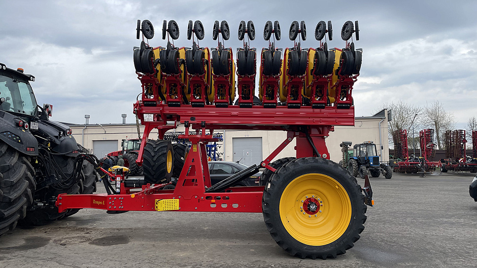 Tempo L также оснащена гидравлическим давлением крыльев, которое за счет распределения веса по всей ширине обеспечивает равномерный ход с поддерживаемой глубиной сева, даже в случае любых неровностей на поле. Двойные опорные колеса адаптированы для сева с узким междурядьем.