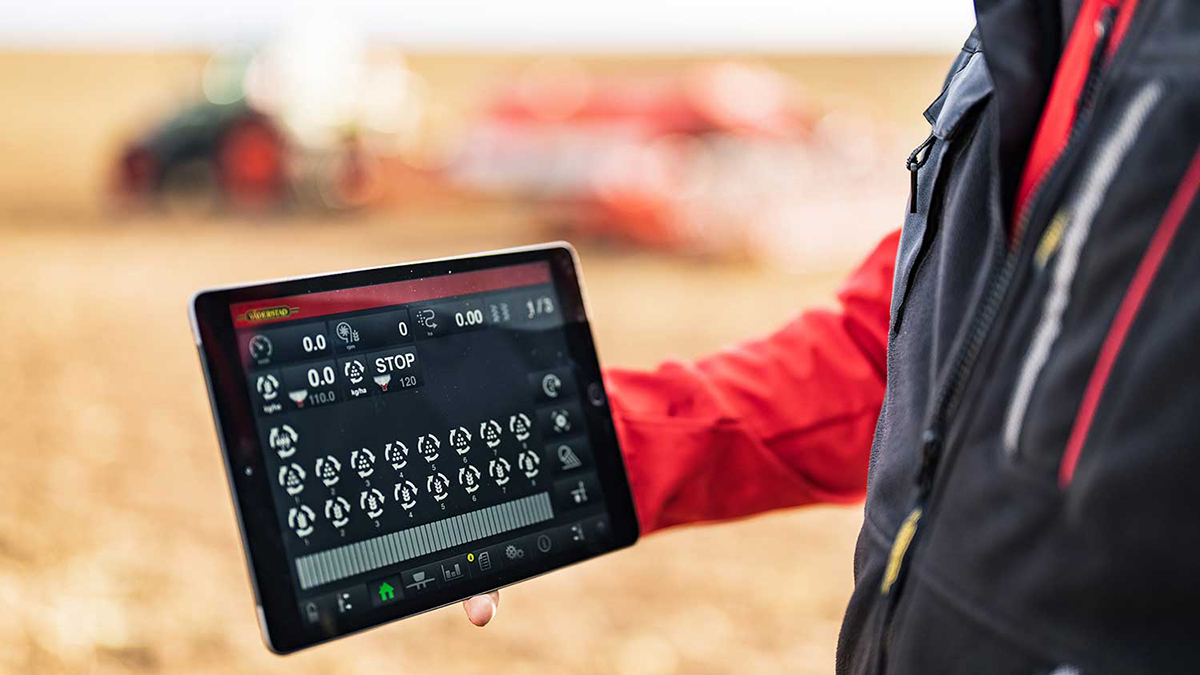Система управления Väderstad E-Control на базе iPad подключается к сеялке по собственной беспроводной системе Wi-Fi, обеспечивая полный доступ для удобной дистанционной настройки и калибровки, а также мониторинга и управления в режиме реального времени.