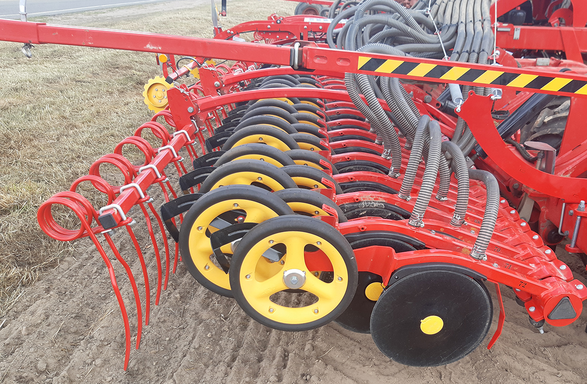 Для обеспечения одинаковой глубины заделки на холмистой местности и на разнящихся типах почвы Spirit 600S обладает активным давлением двухдискового сошника до 80 кг.