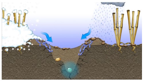 Чтобы вызвать рост семян, в посевной борозде должна быть достигнута правильная температура. Борозда, созданная зубчатым сошником, действует аналогично полосовой обработке, где полоса нагревается быстрее, чем окружающая почва, ускоряя процесс прорастания. Более высокие температуры также увеличивают поглощение удобрений и ускоряют минерализацию, еще больше усиливая рост растений. Кроме того, стерня не дает ветру охлаждать поверхность.