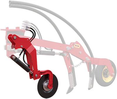 Передний диск установлен с отдельным гидравлическим цилиндром, что позволяет поднимать или опускать его независимо от зубчатого сошника. Он рассчитан на длительный срок службы, оснащен специально закаленным шведским стальным диском V-55 и необслуживаемыми подшипниками. Диск работает в рычажном механизме, что делает его нечувствительным к поворотам. Рычажный механизм установлен с коническими втулками для минимизации износа.