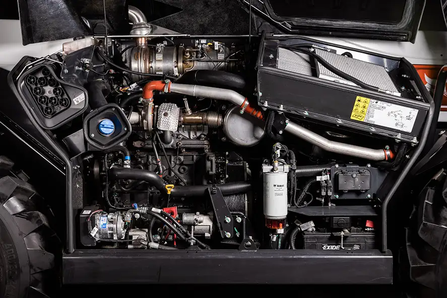 Двигатель Bobcat развивает мощность 135 л. с. и при наличии пакета систем снижения токсичности (система селективного каталитического восстановления + окислительный нейтрализатор дизельного двигателя + сажевый фильтр) соответствует экологическим нормам Stage V даже без использования системы рециркуляции отработавших газов. Максимальный крутящий момент в 500 Н·м достигается при 1400 об/мин за счет применения первоклассной электронной системы управления впрыском топлива, топливной рампы высокого давления и турбонаддува. Компактные размеры двигателя позволили оптимизировать компоновку и обеспечить очень удобный доступ и улучшенную обзорность с правой стороны кабины.
