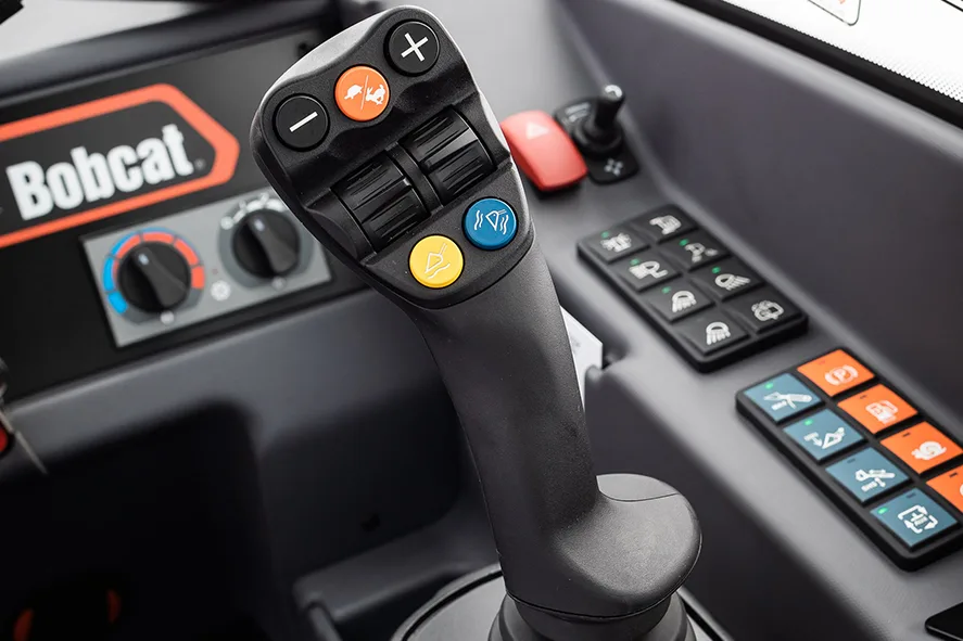 Фирменный джойстик обеспечивает плавное и точное управление стрелой, скоростью и направлением движения машины. Версия Smart имеет две дополнительные функции: встряхивание ковша и плавающий режим стрелы.