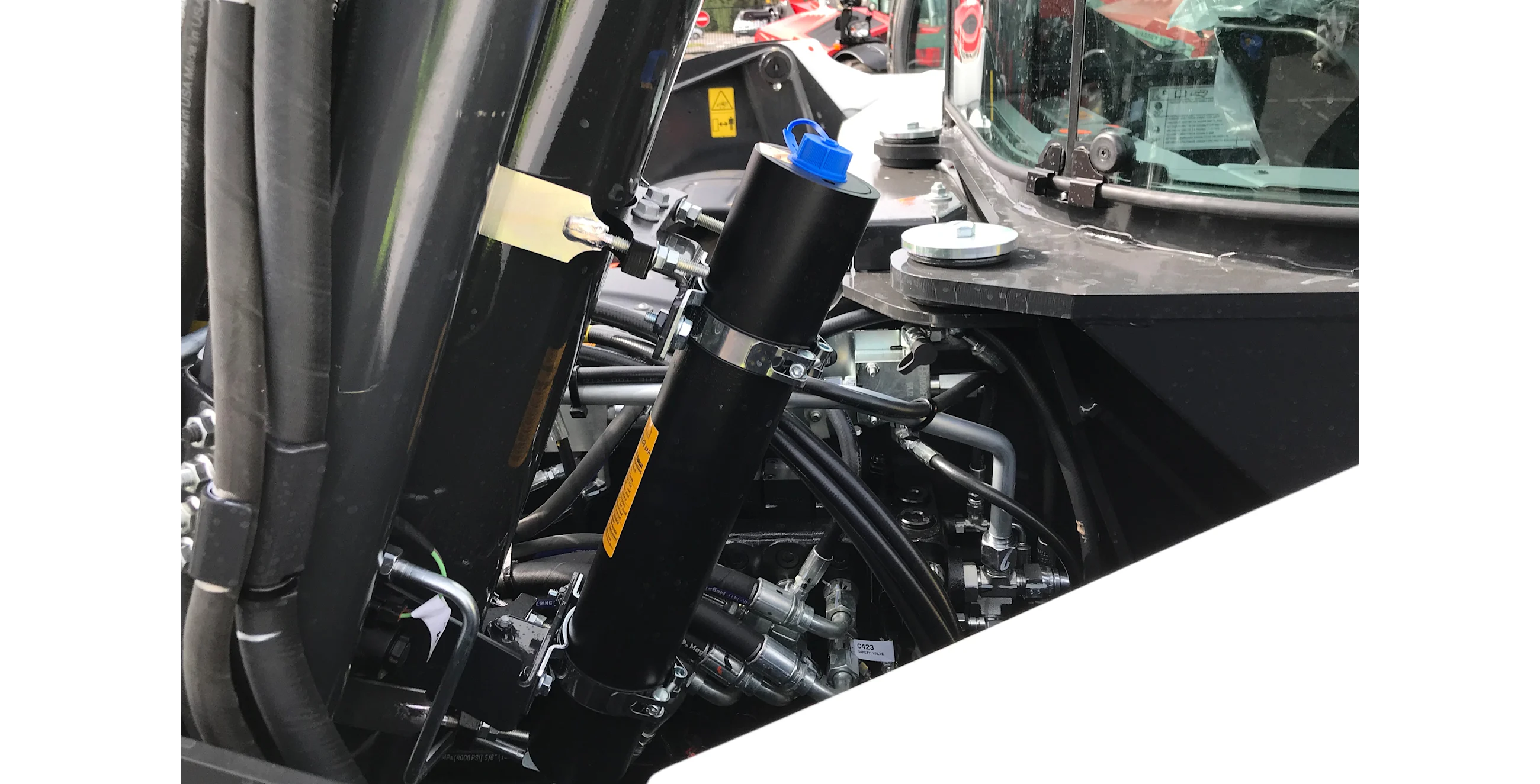 Чтобы повысить плавность хода и скорость перемещения по неровной поверхности, стрела оснащена системой амортизации с азотным пневмогидроаккумулятором, которая включается автоматически на скорости выше 5 км/ч и поглощает большую часть вибраций.