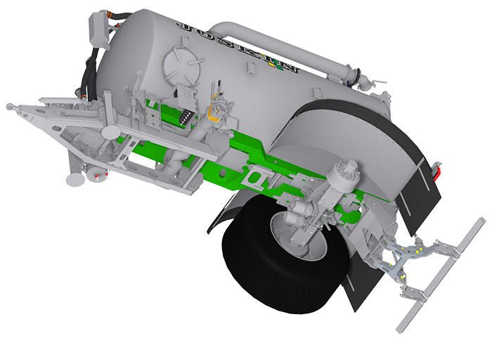 Это транспортное средство очень маневренное благодаря короткой цистерне большого диаметра: 1 900 мм для модели 11100 S, 2 000 мм для 12100 S и 2 100 мм для 14100 S. Дышло имеет конфигурацию «тонкой и короткой стрелы». Оно также отличается компактными размерами и обеспечивает большой угол поворота, что важно при маневрах на разворотной полосе. Подъемник (опция) устанавливается очень близко от задней стенки цистерны, чтобы снизить вынос задненавесного орудия за габариты агрегата.