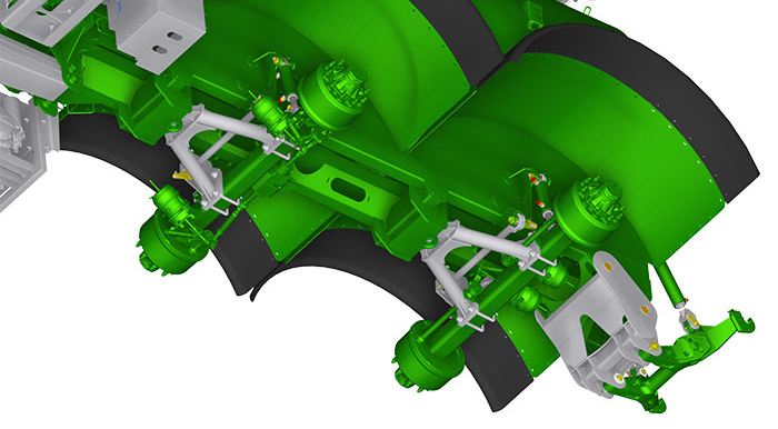 - Hydro-Tandem: гидравлическая подвеска осей с межосевым расстоянием 2 120 мм - ручной возврат на уровень
