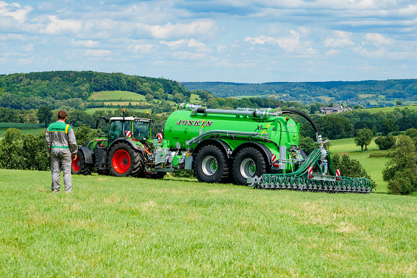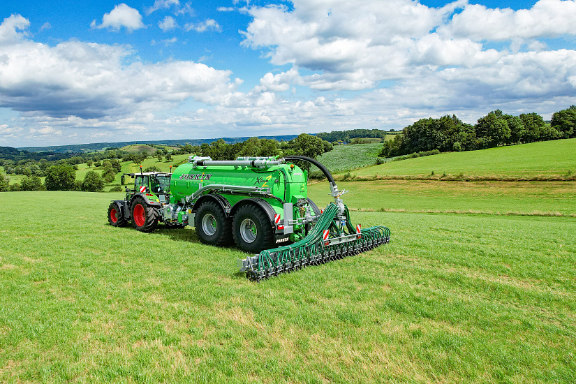 - Полное электрогидравлическое управление машиной, включая реверс насоса, гидропневматическое дышло, измельчитель, заслонку слива измельчителя, автоматическую остановку и подъем оси на модели ТХ