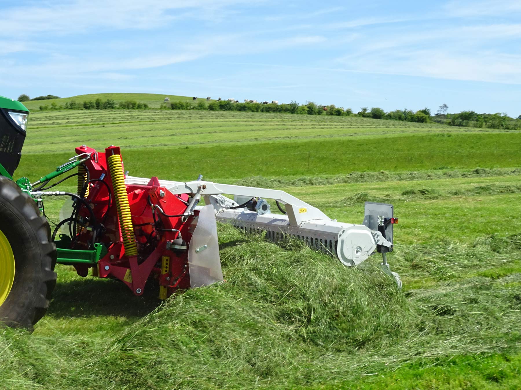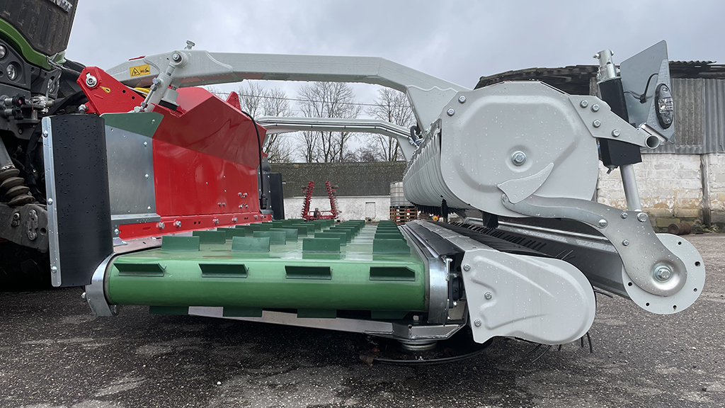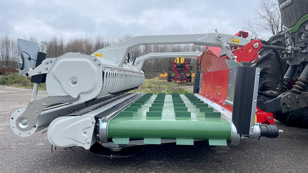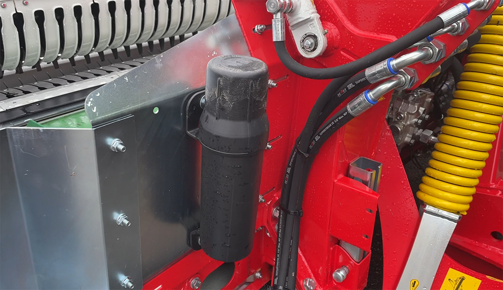 - Валкообразующий каток направляет поток урожая к подборщику