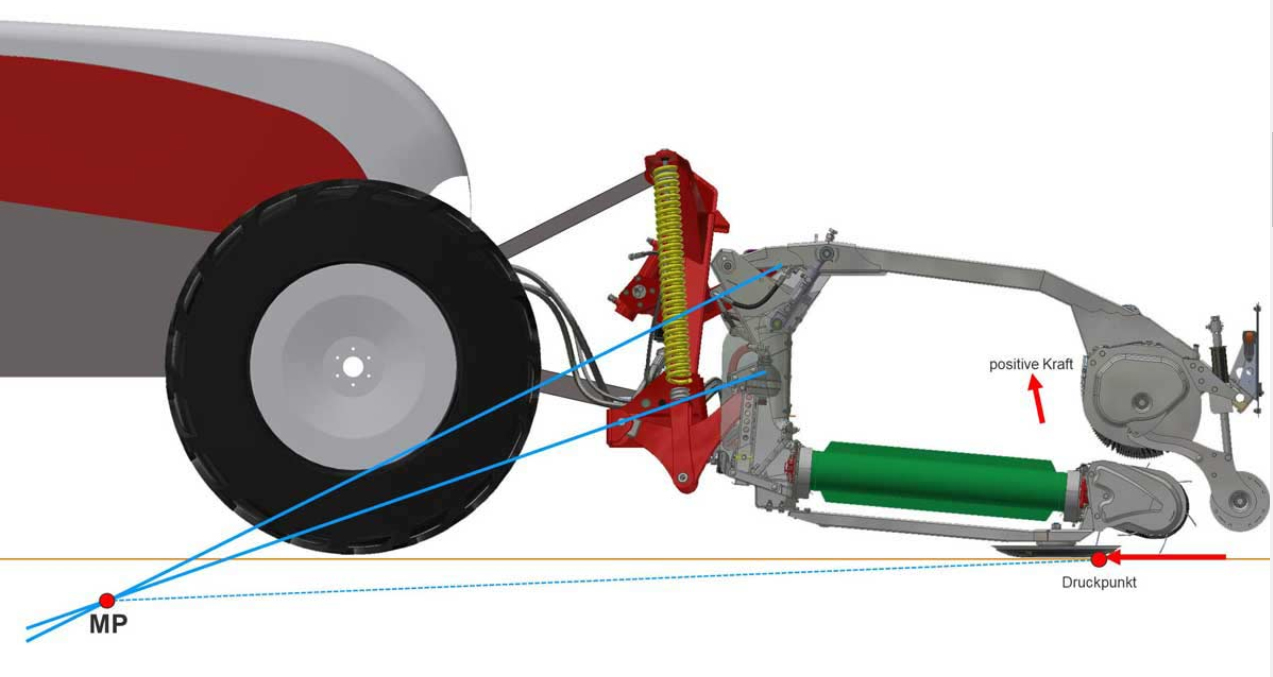Цель интегрированной кинематики с рельефом – разместить точку пересечения (МП) верхнего и нижнего звеньев ниже точки давления во время работы. Это позволяет рабочему агрегату превосходно адаптироваться к почве.