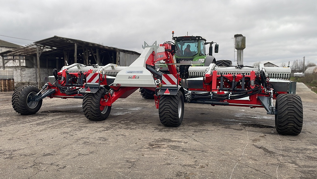 - 4-х колесное шасси с 2-проводным пневматическим тормозом для уменьшения уплотнения почвы. Равномерное распределение веса на 4 колеса. Нет раскачивания на краю поля быстрый поворот. Устойчивость при движении по боковым склонам, плавный ход.