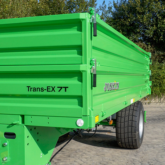 Бортовые прицепы Trans-EX, доступные с одной и двумя осями и грузоподъемностью от 3 до 9 т, отличаются компактностью и легко модифицируются. Все борта кузова легко снимаются для превращения прицепа в платформу: идеально для перевозки тюков и рулонов, ящиков или поддонов. Для пользователей, желающих увеличить объем, в опции предлагаются надставные борта высотой 20, 40 или 80 см. В стандартном выполнении кузов опрокидывается назад, при этом 3-стороннее опрокидывание (влево, назад и вправо) доступно в опции. Короче, Trans-EX - идеальный прицеп для небольшой или средней фермы, конного клуба, садово-паркового хозяйства и т.д.
