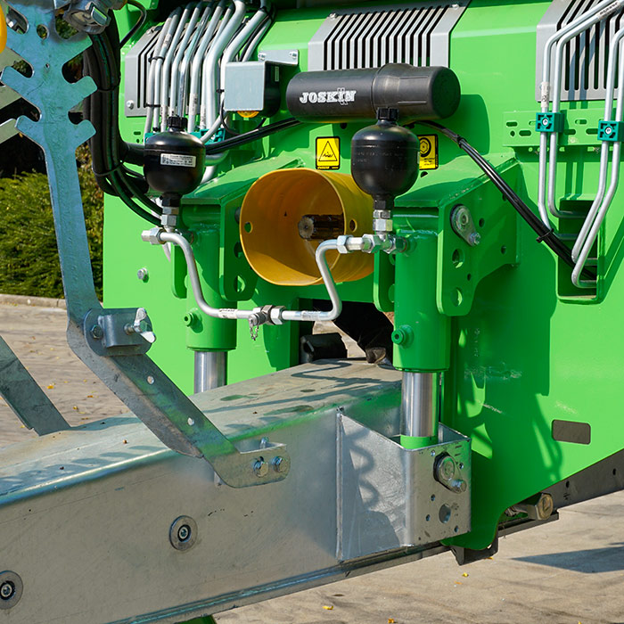 Все модели разбрасывателей навоза Tornado Horizon оснащены в стандартной комплектации гидравлической подвеской дышла. Принцип функционирования подвески заключается в расположении гидроцилиндра с двух сторон дышла в комбинации с азотными аккумуляторами. Эта машина обеспечивает не только комфорт при движении даже с большой скоростью, но и поддерживает постоянную линию тяги, в том числе, при полной загрузке. Благодаря этому, водителю гарантирован комфорт при езде с высокой скоростью по участкам с любым рельефом.