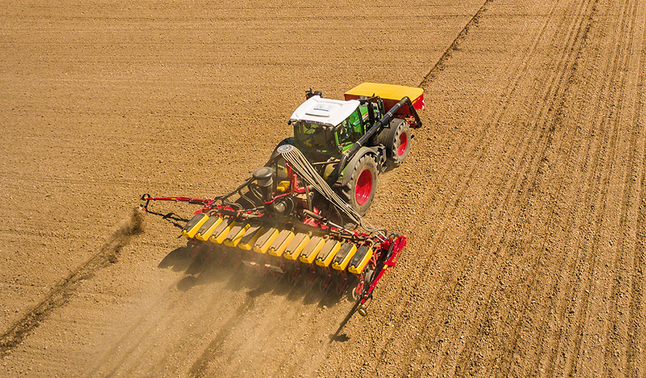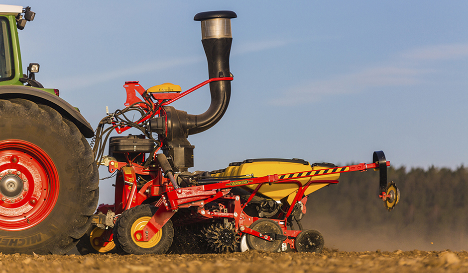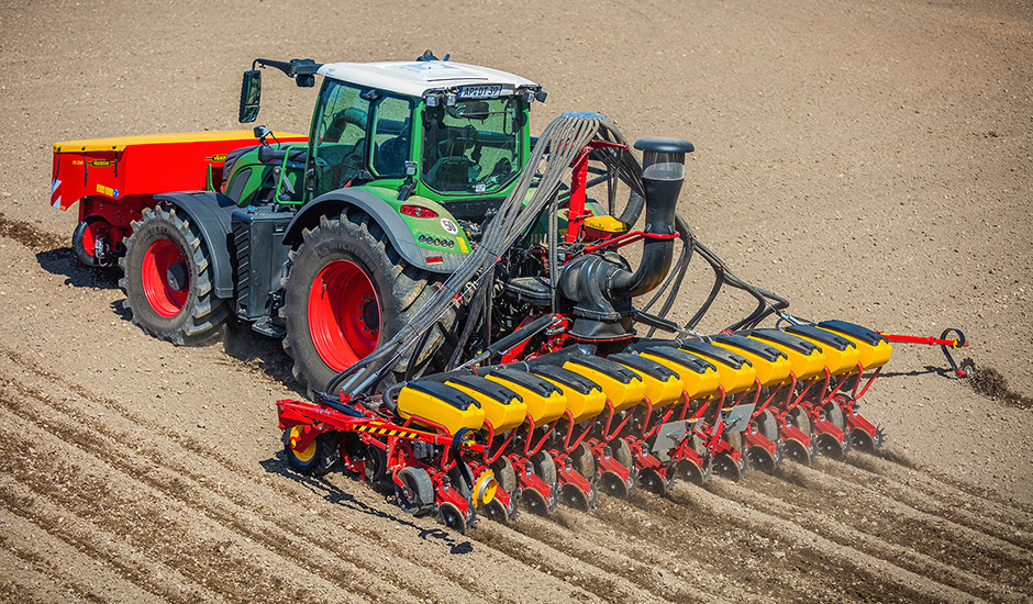 Tempo V – навесная / складываемая пропашная сеялка с максимальной точностью высева на высокой скорости. Благодаря открытой модульной конструкции сеялки Tempo V можно легко отрегулировать необходимое расстояние между секциями под посев различных культур: сахарной свеклы, подсолнечника, кукурузы, сои, бобов, рапса и других. А это значит, что одна машина Tempo V может заменить две традиционные сеялки. Общая практика показывает, что в начале сезона высевают семена сахарной свеклы с междурядьем 500мм, затем кукурузу – 750мм и осенью для озимого рапса – 450мм. Оборудованная фронтальным бункером FH 2200, сеялка Tempo V способна выполнить комбинированную заделку с внесением удобрений на высокой скорости.