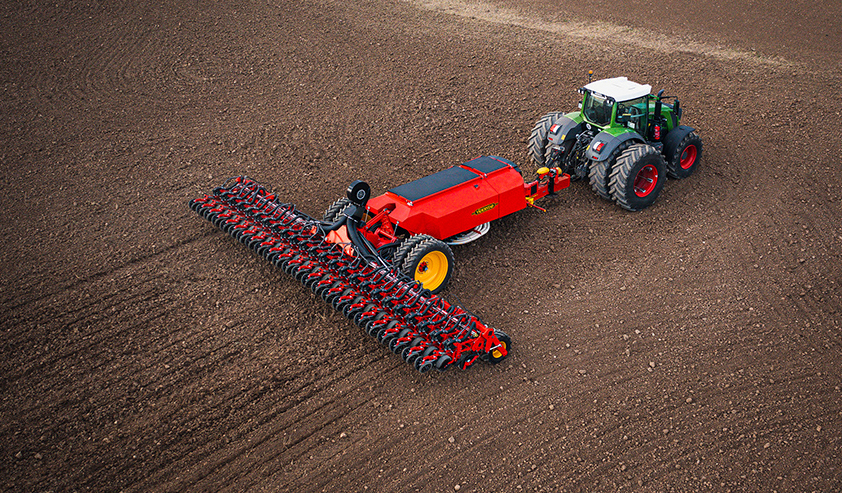 Tempo L также оснащена гидравлическим давлением крыльев, которое за счет распределения веса по всей ширине обеспечивает равномерный ход с поддерживаемой глубиной сева, даже в случае любых неровностей на поле. Двойные опорные колеса адаптированы для сева с узким междурядьем.