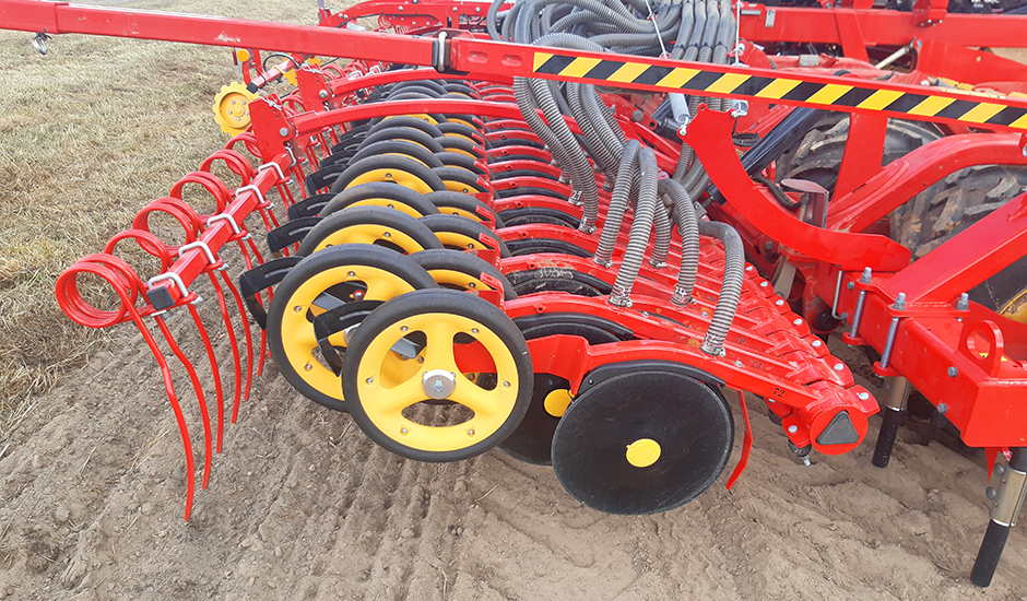 Spirit 600S – это высокопроизводительная универсальная сеялка с шириной захвата 6 метров для работы по технологии традиционной и минимальной обработки почвы. Для обеспечения одинаковой глубины заделки на холмистой местности и на разнящихся типах почвы, Spirit 600S обладает активным давлением сошника. Колеса с расстановкой OffSet большого размера перед секцией сошников гарантируют хорошее уплотнение с минимальным эффектом нагребания почвы, что особенно важно для легких почв.
