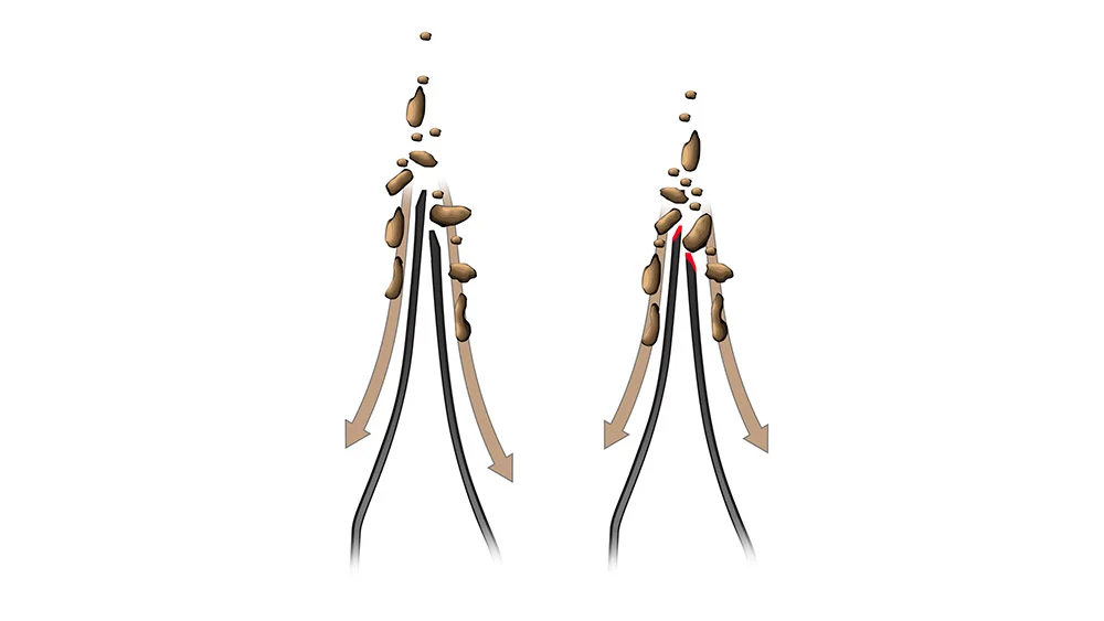 Коническая форма семенного диска создаёт узкое семенное ложе, что минимизирует нарушение почвенного слоя. Это снижает тяговые требования и повышает способность справляться с пожнивными остатками.Использование совместно с системой расположения Offset, форма диска позволяет работать на большую глубину с меньшим давлением сошника.