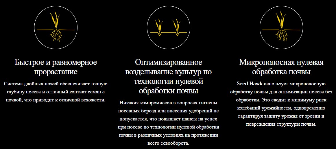 Объединяя универсальность дискового сошника с микроклиматом, создаваемым двухножевым сошником, Seed Hawk предлагает лучшее из обоих миров. Это позволяет ему работать с системами сберегающего земледелия с покровными культурами. Он также повышает производительность при укоренении осеннего масличного рапса в стерне пшеницы и при посеве на легких или органических почвах с низким сопротивлением или высокой плотностью сорняков.