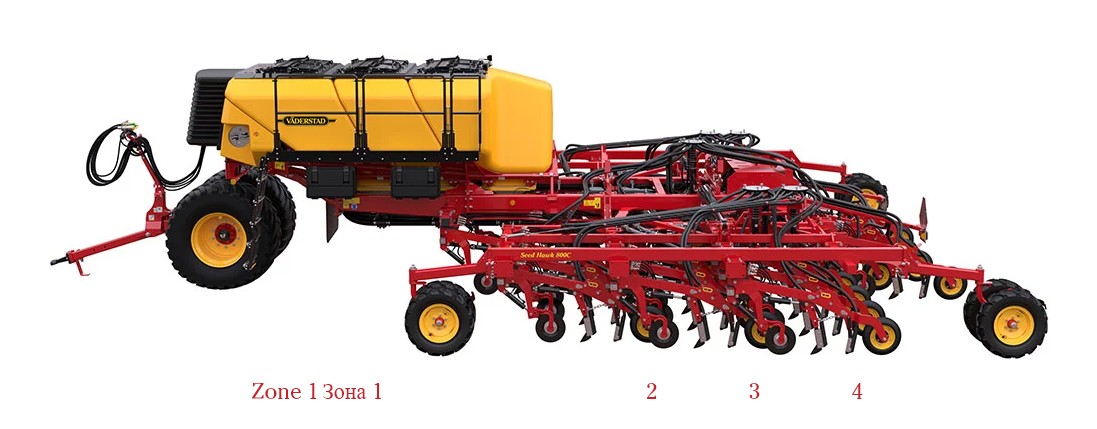 Seed Hawk оснащен бункером объемом 7000 литров, разделенным на три отсека. Каждый отсек может использоваться для размещения продукта либо в ноже для семян, либо в ноже для удобрений. Это также позволяет смешивать два продукта в одном воздушном потоке. Например, стартовое удобрение, такое как фосфор, можно поместить вместе с семенами для быстрого доступа, что ускорит прорастание и развитие корней.