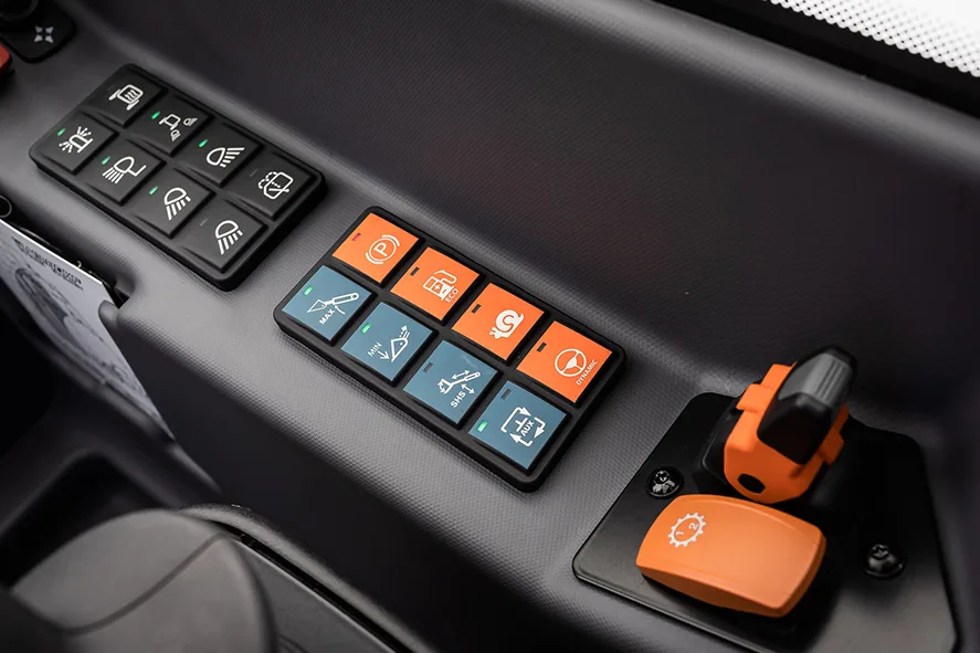 Все органы управления находятся под рукой, а их интуитивно понятное размещение и цветовая маркировка позволяют быстро найти нужную функцию. Подсветка клавиш имеет тот же цвет, благодаря чему их легко опознать даже в темноте. Чтобы еще больше упростить работу и сделать ее безопасной, мы предусмотрели функцию автоматического включения стояночного тормоза.