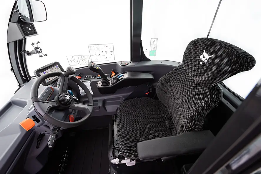 Телескопические погрузчики Bobcat оснащаются сиденьем с подголовником и пневматической подвеской, поглощающей низкочастотные вибрации. Это премиальное сиденье позволяет оператору комфортно чувствовать себя в течение всего рабочего дня на любой, даже самой неровной поверхности.