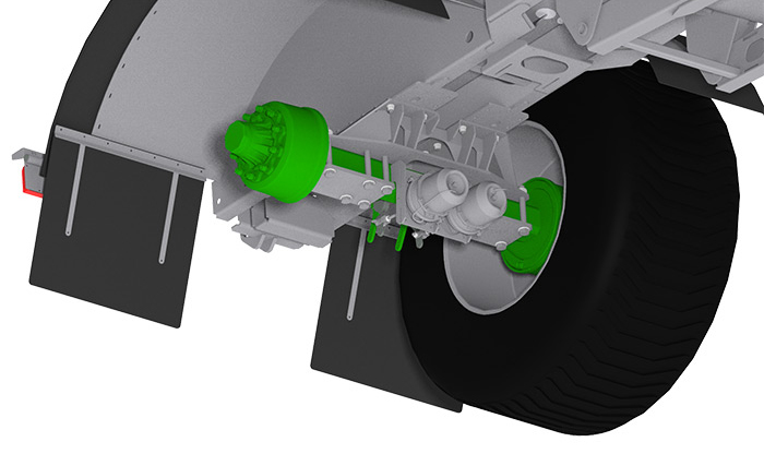 В стандартной комплектации цистерны COBRA2 оборудованы усиленной осью, закрепленной болтами на раме цистерны. Соответственно, при смене навесного оборудования ось может быть легко перемещена, чтобы в любой момент гарантировать оптимальную пропорцию между нагрузкой на ось и на серьгу. Для облегчения этой операции вырезанные пазы имеют увеличенные размеры. Дышло с подвеской на сайлент-блоках (возможны разные позиции) поглащает толчки и вибрации. Для большего комфорта оно может быть оснащено гидропневматической подвеской.
