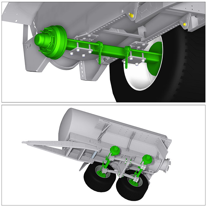 - Ходовая часть багги JOSKIN Roll-Over с параболическими рессорами 1.350 мм на моделях 8400 – 14000 МЕВ и 1.600 мм от 16000 МЕВ