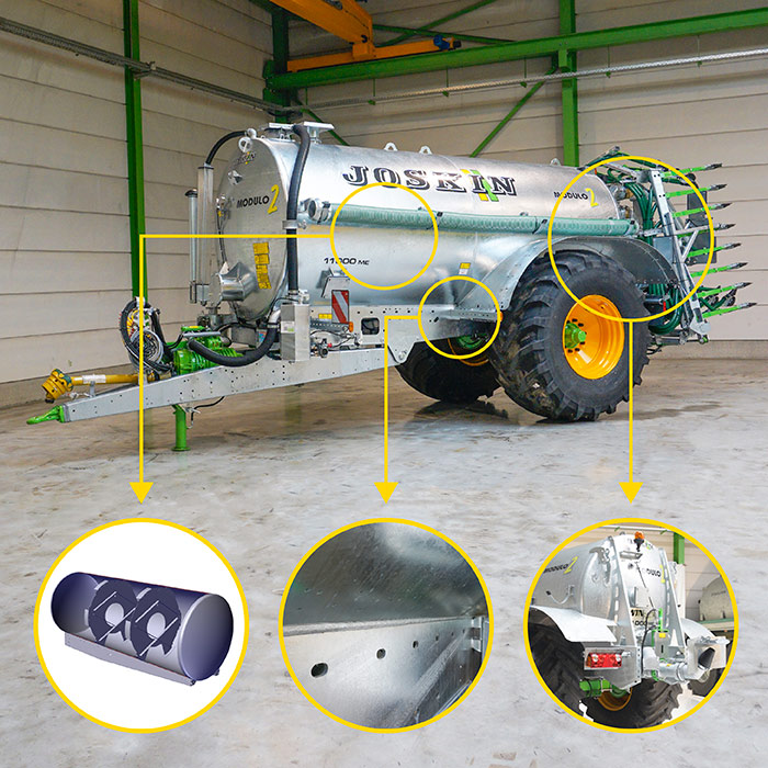 - Смотровой люк Ø 600 мм сзади цистерны Задняя гидравлическая заслонка Ø 6”