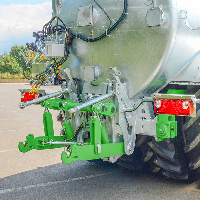 Эта цистерна для внесения органики может работать с любыми задними орудиями благодаря имеющемуся преоборудованию. Её 4-точечный компактный подъемник, доступный опционно, снижает вынос орудия за габариты бочки и гарантирует оптимальную поддержку, благодаря коническим осям, соединяющим его с шасси.