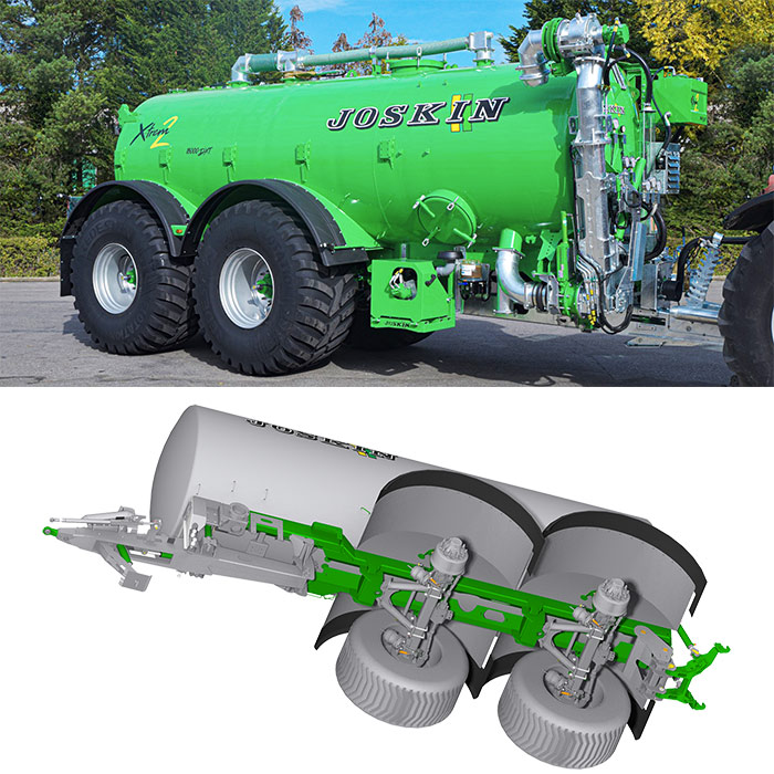 - Hydro-Tandem: гидравлическая подвеска осей с межосевым расстоянием 2 120 мм - ручной возврат на уровень